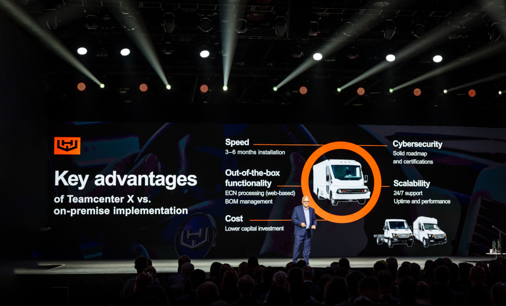 Al término de la presentación de Hemmelgarn le siguió Jeff Mowry, CIO en Workhorse: un fabricante de vehículos con emisión cero, que tiene sede en los Estados Unidos. Esta compañía adoptó Siemens Xcelerator para transformar digitalmente sus procesos comerciales, desde el diseño y la producción hasta el servicio. Workhorse desarrolló una atractiva línea de camiones eléctricos, y su vehículo insignia Clase 5 representa ingeniería de vanguardia.